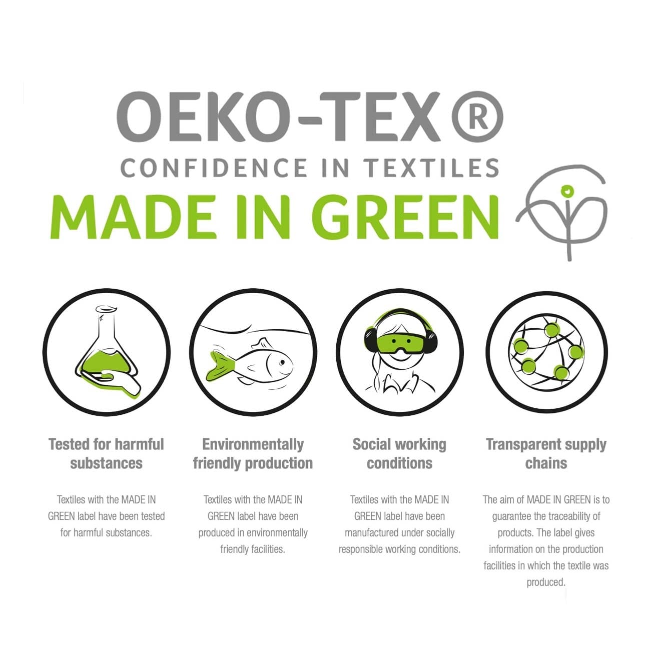 We're committed to make products safer for you and safer for the world; STANDARD 100 by OEKO-TEX certified; Every component of this product has been tested and verified free of harmful substances and produced sustainably