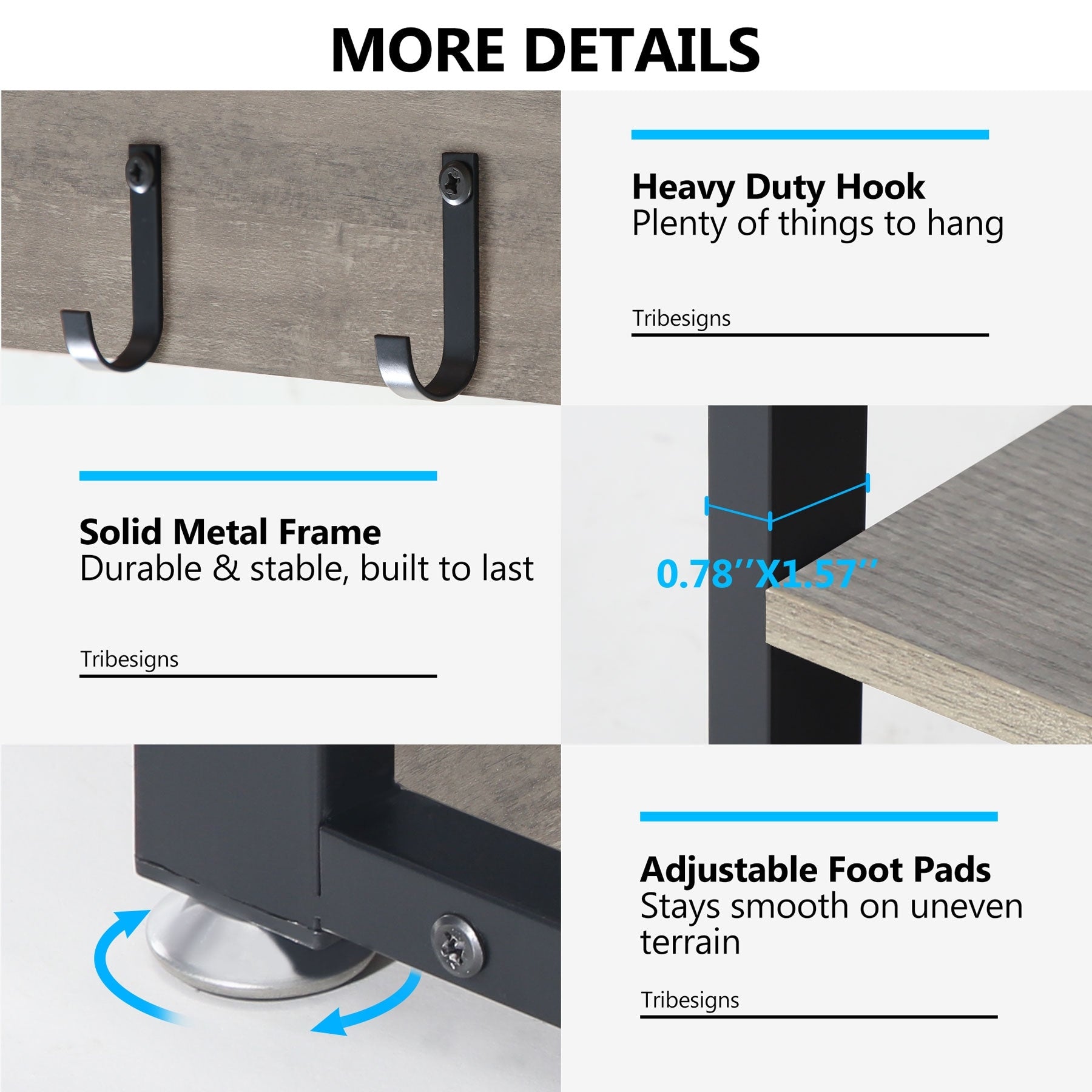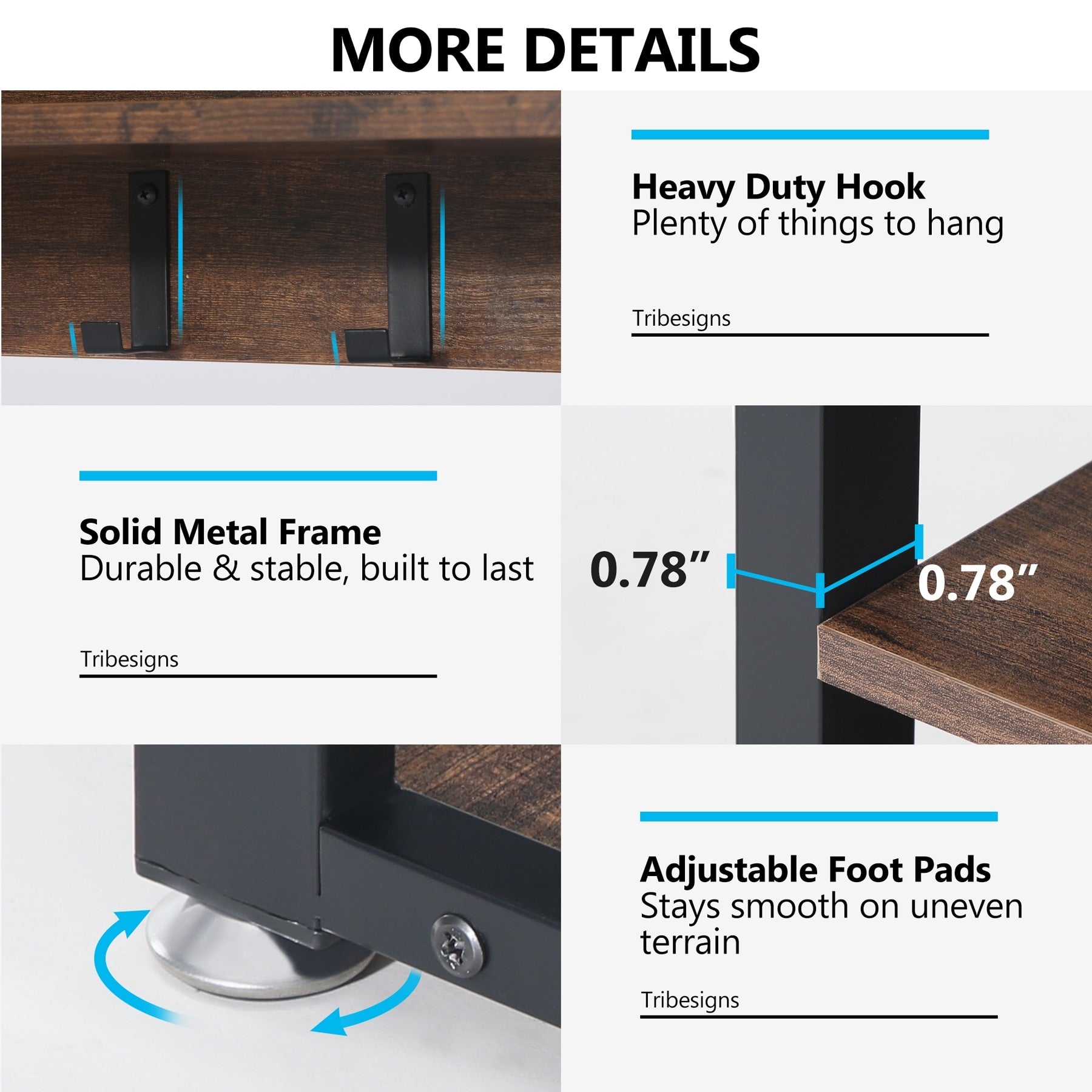 • Bench legs made from solid metal (0.78' by 1.57' width)