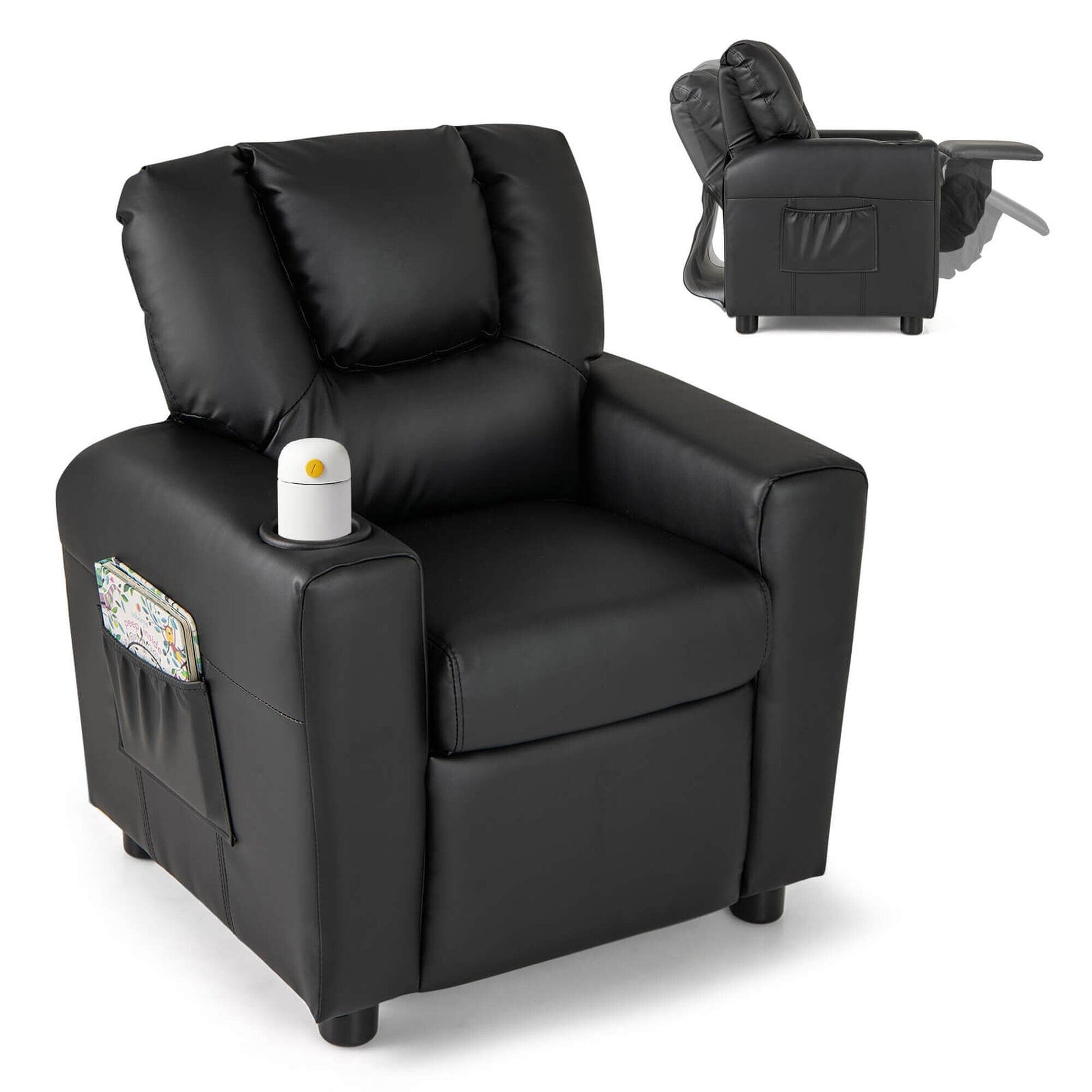 Découvrez le confort et la commodité réunis dans ce fauteuil inclinable pour enfants ! Ce fauteuil inclinable à bascule possède un dossier et un repose-pieds réglables, qui s'adaptent parfaitement aux besoins variables des enfants. Qu'il soit temps de s'asseoir et de participer à des activités ou de se détendre pour une sieste paisible, la flexibilité de ce fauteuil répond à tous les besoins. Le dossier et l'assise rembourrés de mousse haute densité offrent une expérience de confort optimale. Recouvert de cuir PU de première qualité, ce canapé enfant a un aspect luxueux et est facile à nettoyer. Le porte-gobelets intégré et la poche latérale pratique améliorent encore sa fonctionnalité, en gardant les boissons ou les jouets préférés à portée de main. De plus, sa structure en bois massif permet de supporter une charge maximale de 200 kg (440 lbs), ce qui en fait une option fiable pour les enfants en pleine croissance.